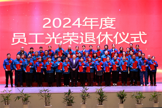 會(huì)上,為2024年度退休的員工舉辦了光榮退休儀式。公司黨委委員、紀(jì)委副書(shū)記、副總經(jīng)理孫玉濤宣讀了2024年度退休員工名單;黨委書(shū)記、董事長(zhǎng)盛守祥為退休員工代表頒發(fā)榮譽(yù)證書(shū);退休員工張炳營(yíng)代表67位退休員工作退休感言。
