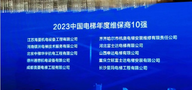 “2023中國(guó)電梯年度維保商10強(qiáng)”